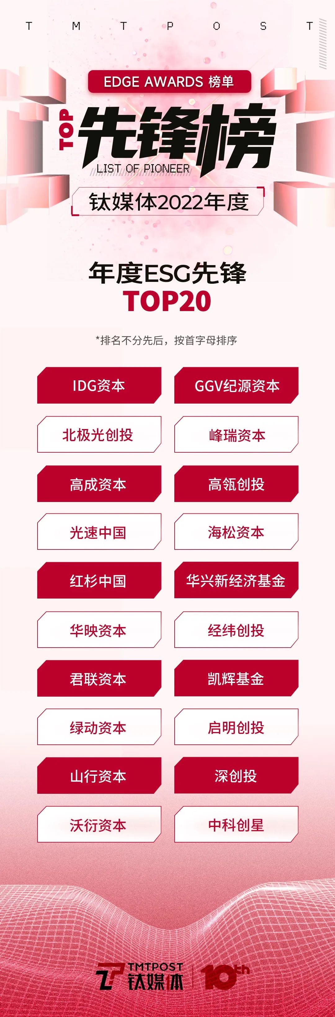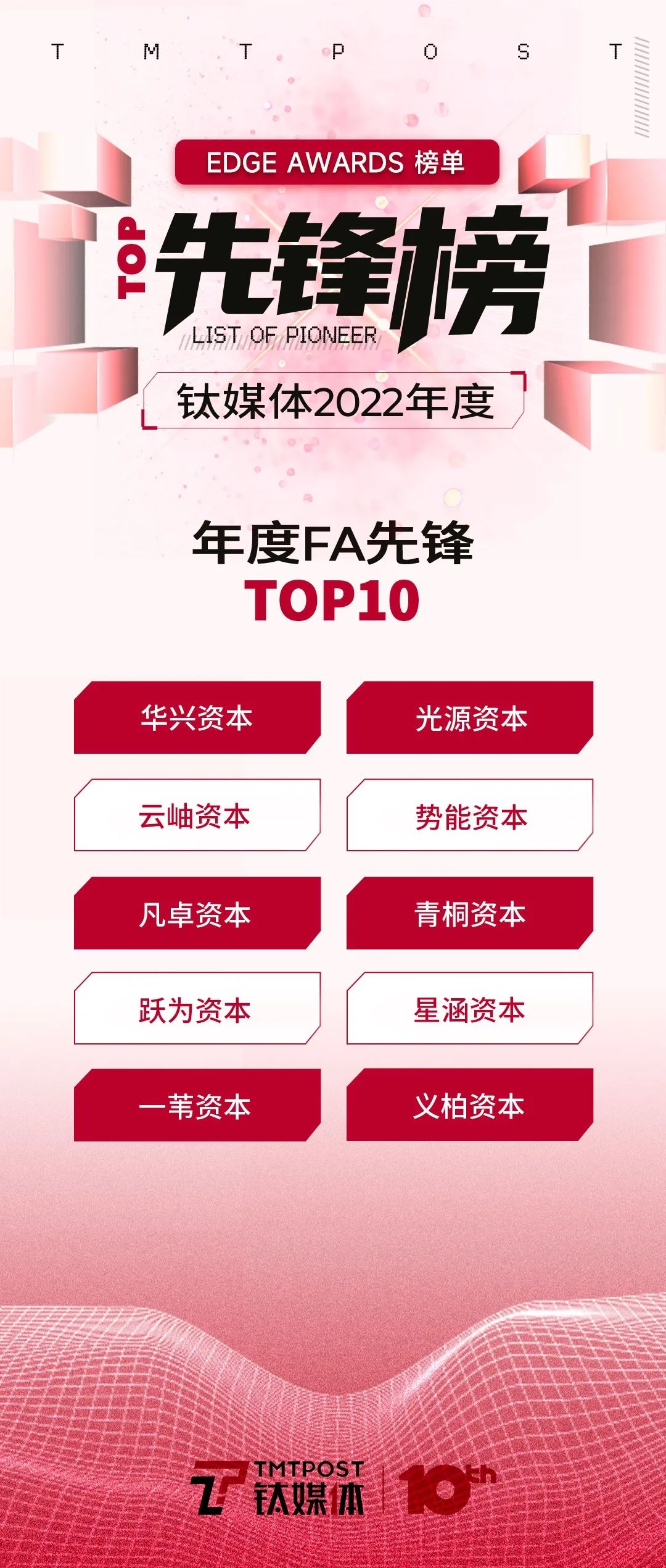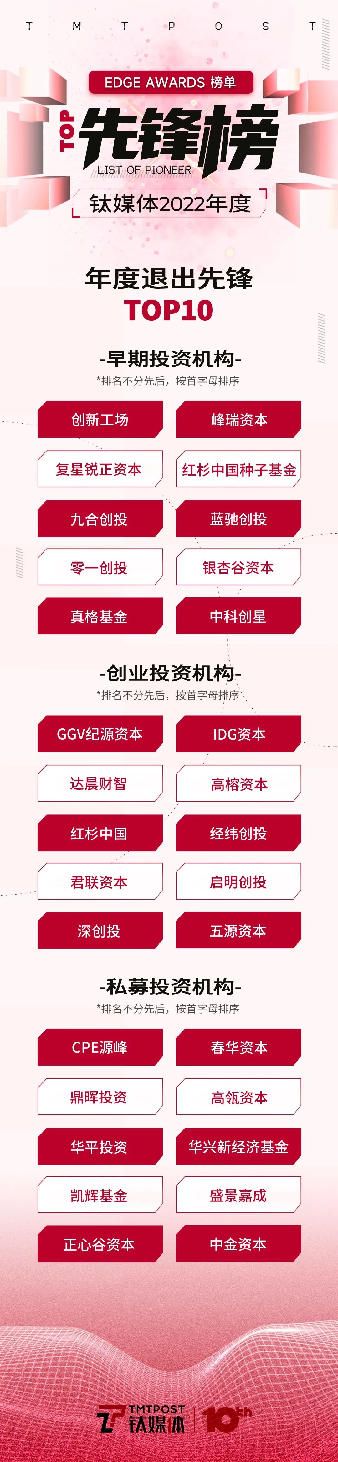 本榜单将揭晓,募、投、管、退先锋、S基金先锋、ESG先锋、CVC先锋、FA先锋,以及四大细分赛道,先进制造、医疗大健康、企业服务、双碳领域投资先锋。
