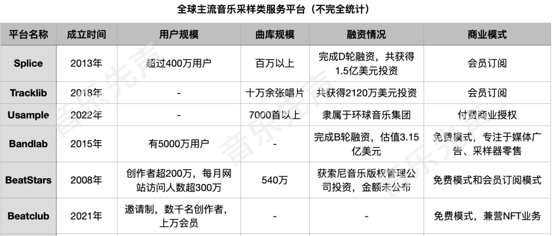 如今,行业内的资本已然瞄准了音乐采样服务。