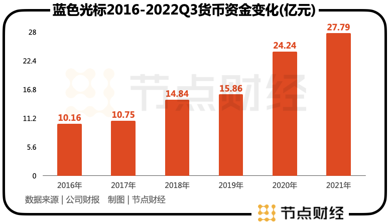 除了费用率之外,蓝色光标其他方面的财务数据也非常健康。比如2022年三季度,其经营活动产生的现金流净额为1.29亿元。到2022年底,其经营性现金流净额达到超10 亿元。此外,蓝色光标手中的现金储备非常充足,三季度货币资金为30.34亿元。
