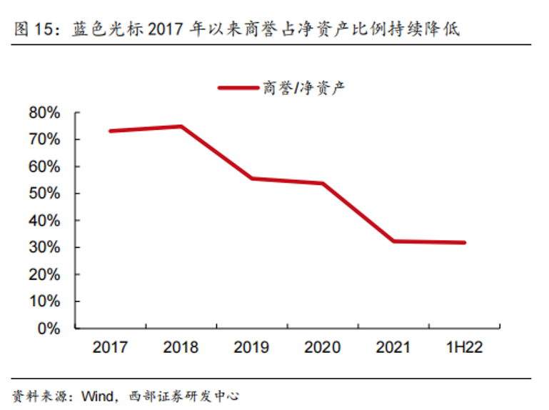 2021年9月,蓝色光标完成与海外战略投资者关于蓝标国际下属四家全资子公司的股权转让,交割后18亿商誉不再纳入蓝色光标合并报表,其商誉降至约30.38亿元,占公司净资产的比重将降至33%以下。