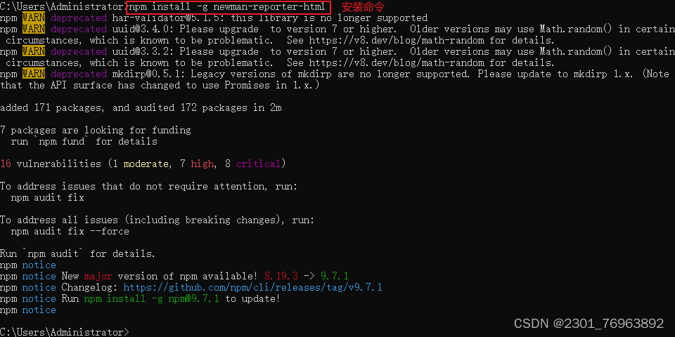 - 安装生成测试报告指定路径以及名称的插件- 线上安装命令:npm install -g newman-reporter-html-