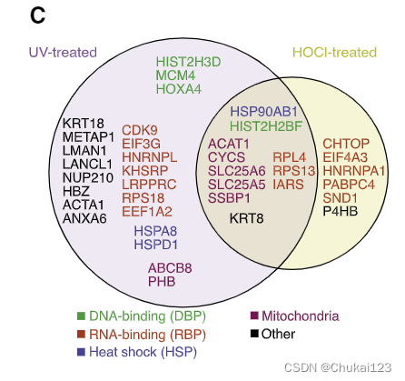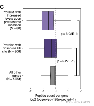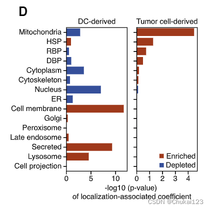 为了清楚起见,我们建立了逻辑回归模型来测试基因定位和功能类别是否可以改进肽预测,而不是已经考虑了结合和基因表达的模型。 当我们考虑结合和表达时,RBP、DBP 和 HSP 不再显着,但线粒体蛋白仍然显着(p = 2.6e-4;图 7D)。 值得注意的是,富集模式与我们观察到的光标记肽完全不同。