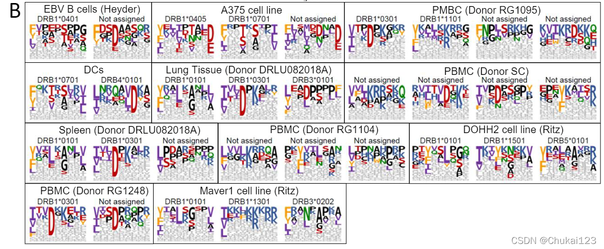 一种广泛使用的定义肽结合基序的方法是一种生化测定法,该测定法在没有生理伴侣的情况下测量单个肽的亲和力。 测得的亲和力数据覆盖范围仅限于常见的欧洲 HLA-DR 等位基因,即使对于这些等位基因,预测准确性也落后于 HLA-I(Barra 等人,2018;Karosiene 等人,2013)。 基于质谱 (MS) 的配体组学应通过提供可扩展性和内源性肽加载条件来改进预测。
