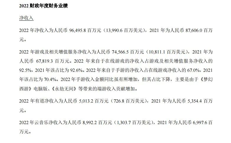 (网易2022全年财报截图)