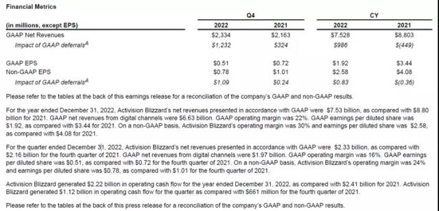 (动视暴雪2022年度财报截图)