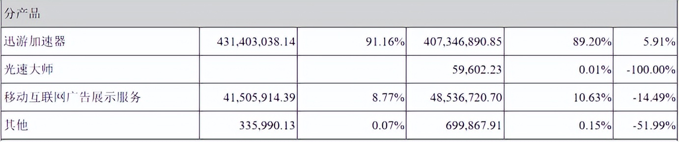 四年累计亏损了逾21亿元,这与章、袁、陈三人高层纷争脱不开关系。同时必须正视的是,迅游科技从2015年就暴露出的业务单一问题并没有得到解决。据其2015年年报显示,迅游网游加速器是迅游科技唯一的营收组成部分;到了2021年,迅游加速器实现营收为4.31亿元,依旧占公司营业收入比重的91.16%。