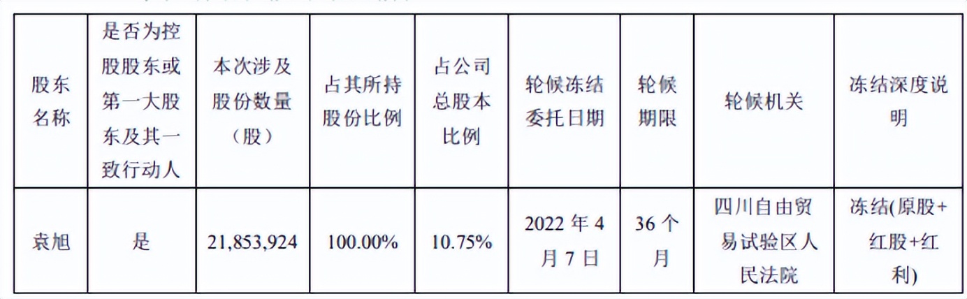 由于袁旭未能及时还款,2019年8月章建伟向成都中院提出诉讼,就是从那时通过财产保全冻结了袁旭持有的全部公司股份。