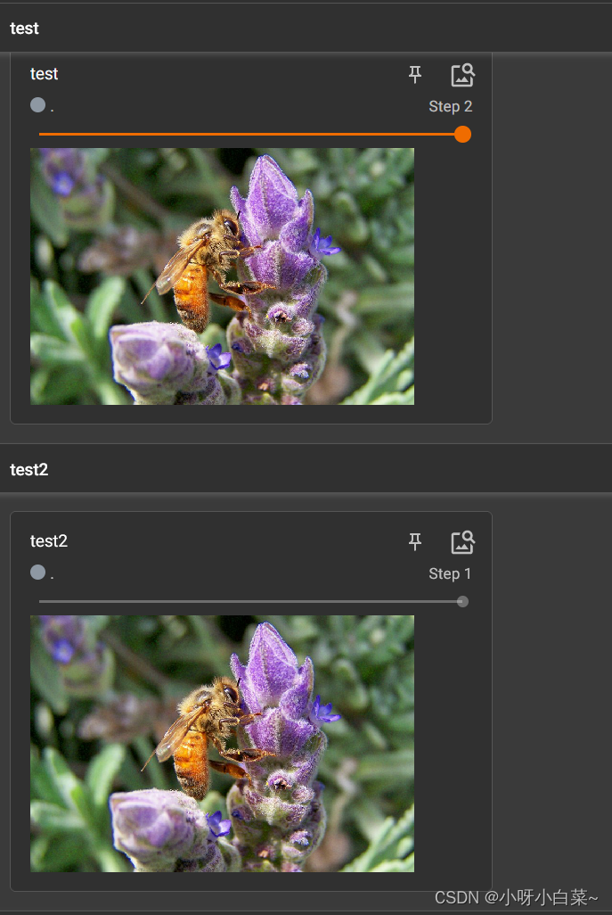 当更改图片路径以及image()函数中的训练步数时(不更改title),会发现图片显示step2的,并且可以实现和step1之间的切换: