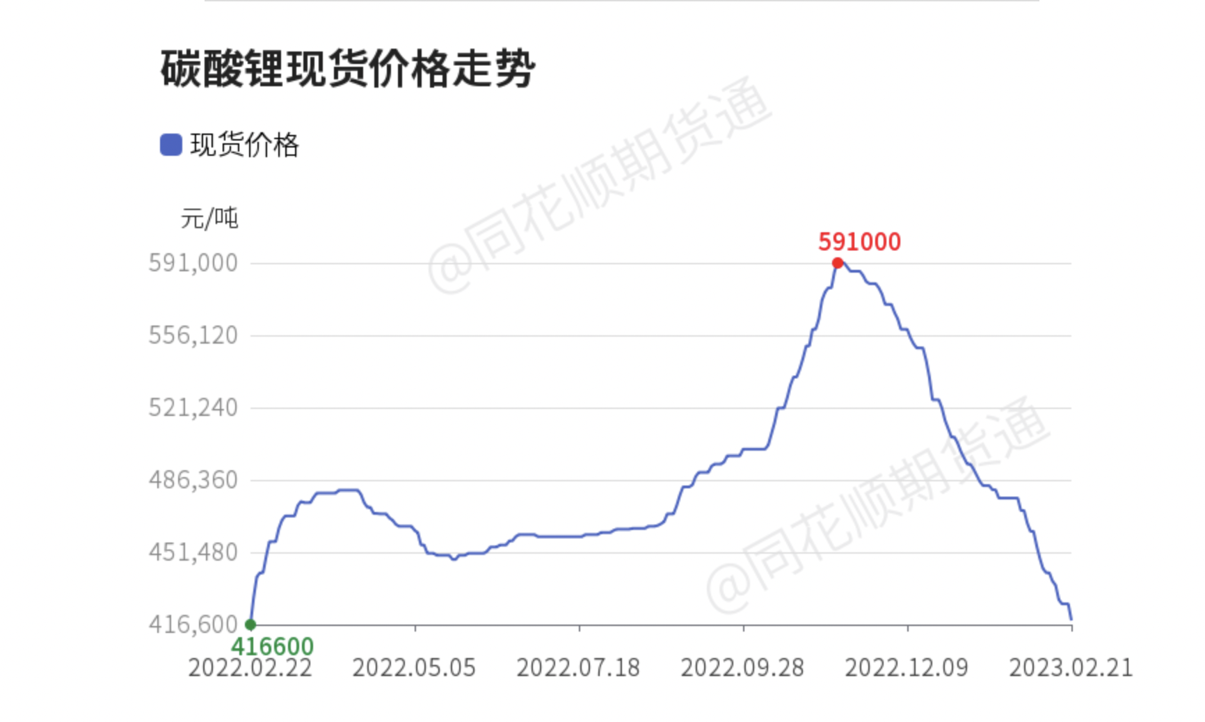 目前,工业级碳酸锂价格行情已是2022年年初的碳酸锂同期水平,但相较去年同期,这次的锂价却“同价不同趋势”,未有涨势表现,尽显下跌预期。