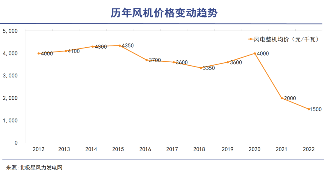 由于塔筒、桩基、筑件等风机零部件多采用成本加成的定价模式,因此钢材、环氧树脂等价格的下跌也将大概率带动风电机组的价格下跌,进而提高风电站的收益率,最终带动2023年新增风电装机量的提升。