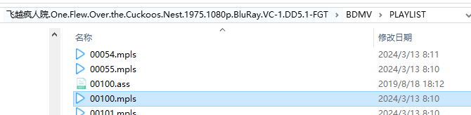 将我们下载好的字幕文件直接拖到「BDMV--PLAYLIST」文件夹里面,然后将字幕文件的名字重命名为Potplayer播放时候的那个 .mpls文件名字一样的即可!我这边播放的是00040.mpls文件,所以我把所有的字幕文件名称全部改成00040.ass/srt。