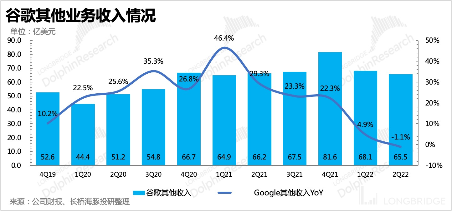 二季度以 Google Play、YouTube 订阅、智能硬件为主的其他谷歌服务,实现收入 65.5 亿元。