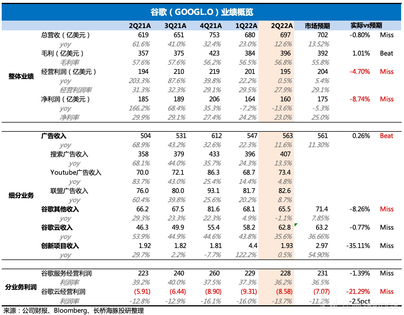 1)从业绩上来说:一方面,下半年的广告逆风是相对确定的事件,而谷歌的相对优势在于,搜索广告仍然受益服务需求,并且并不受苹果 ATT 影响,甚至从预算迁移的角度反而受益。但另一方面,YouTube 遭受的一些竞争影响,以及对 Shorts 上的投入,都会最终反应到利润压力。虽然当前主要收入支撑还是来自于搜索广告,但 YouTube 广告代表着的是谷歌长期的增长动力之一。