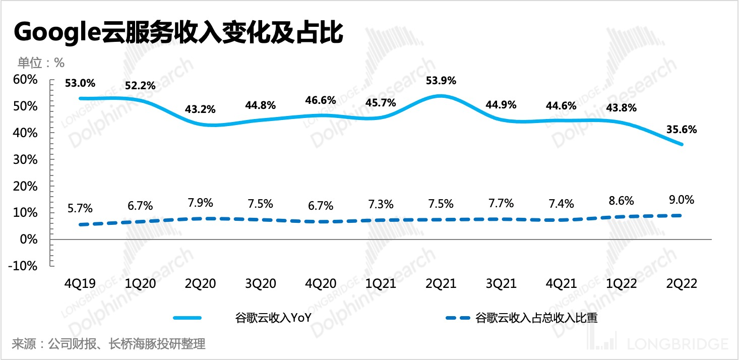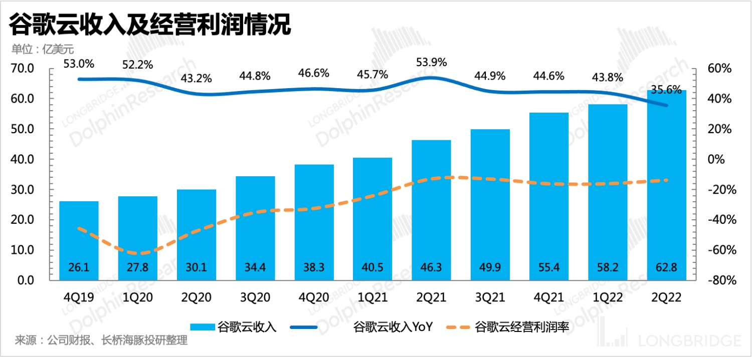 二季度云业务实现 63 亿收入,同比增长 36%,与预期持平。虽然增速上环比上季度有所下滑,但也有去年同期高基数的影响。云业务增长稳定,除了本身 To B 业务更换成本高使得客户粘性强外,去年底谷歌拿的几个长期合同订单,也对一定时间内的云业务收入提供了一些保证。
