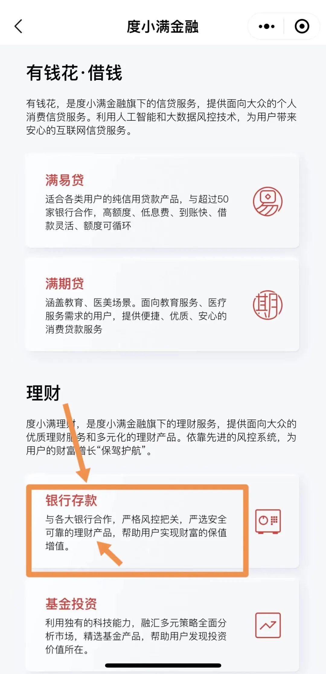 将银行存款业务,归于旗下理财服务部分,并号称与各大银行合作,严格封控把关,严选安全可靠的理财产品,帮助用户实现财富的保值增值。