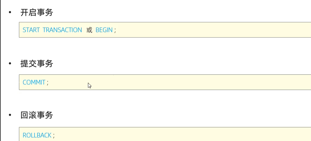 select @@autocommit;set @@autocommit=0;-- 张三给李四转账1000select*from account where name ='张三';update account set monney = monney -1000where name ='张三';update account set monney = monney +1000where name ='李四';-- 提交事务commit;-- 回滚事务;rollback;