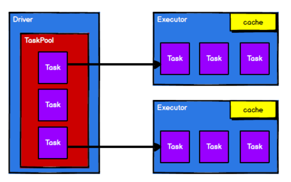 - Spark 框架在执行时,先申请资源,然后将应用程序的数据处理逻辑分解成一个一个的 计算任务。然后将任务发到已经分配资源的计算节点上, 按照指定的计算模型进行数据计 算。最后得到计算结果;
