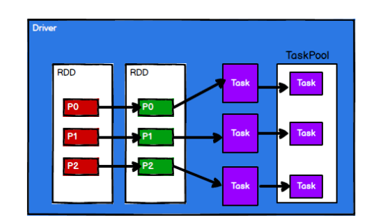 从以上流程可以看出 RDD 在整个流程中主要用于将逻辑进行封装,并生成 Task 发送给 Executor 节点执行计算,接下来我们就一起看看 Spark 框架中 RDD 是具体是如何进行数据 处理的;