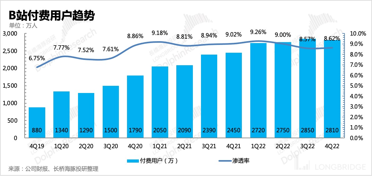 在一次次失望的业绩下,高增长的用户规模几乎是 B 站在经济逆风期唯一还能够维持自己 “成长属性” 的标签。但自从上季度公司宣布在减亏诉求下开始更注重追求用户质量时,市场对于 “2023 年末 4 亿用户的目标” 还能否如期实现也有了一些担忧。