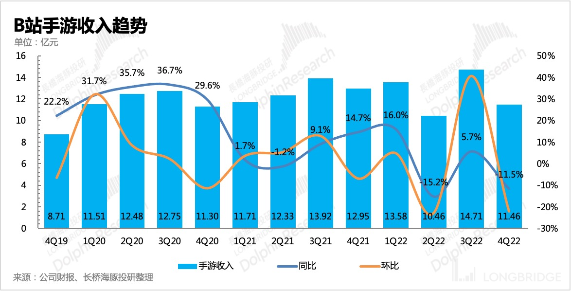 四季度 B 站游戏收入 11.46 亿元,同比下滑 12%,主要源于供给太弱。