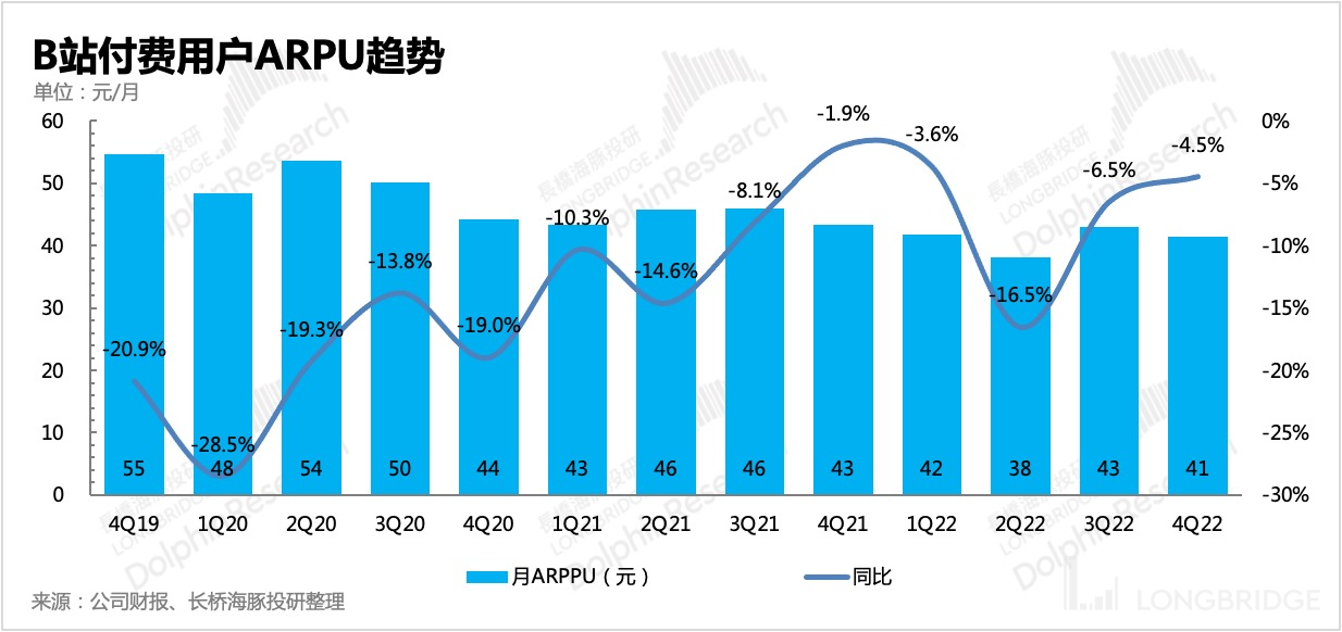 四季度单用户付费金额 ARPU 为 42 元/人/月,同比下滑 4.5%,仍然在趋势性下滑中,与整体付费内容行业表现出的走势差不多。此外,就是高付费力的游戏因为供给不足,导致也有结构性走低的原因。最终的付费消费力修复,还得看宏观经济以及平台本身的内容供给。