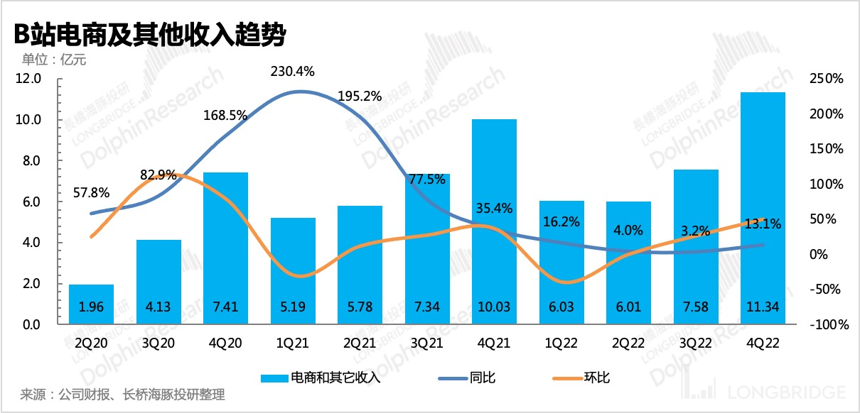 除此之外,去年 10 月 B 站也在积极推进直播电商的功能上线,以期扩大直播生态。不过,对比各家平台要做电商闭环,B 站管理层还是有自知之明,不去卷电商基建了,努力做好导流创收就行,旨在加强平台上的用户粘性,以及进一步挖掘用户价值。
