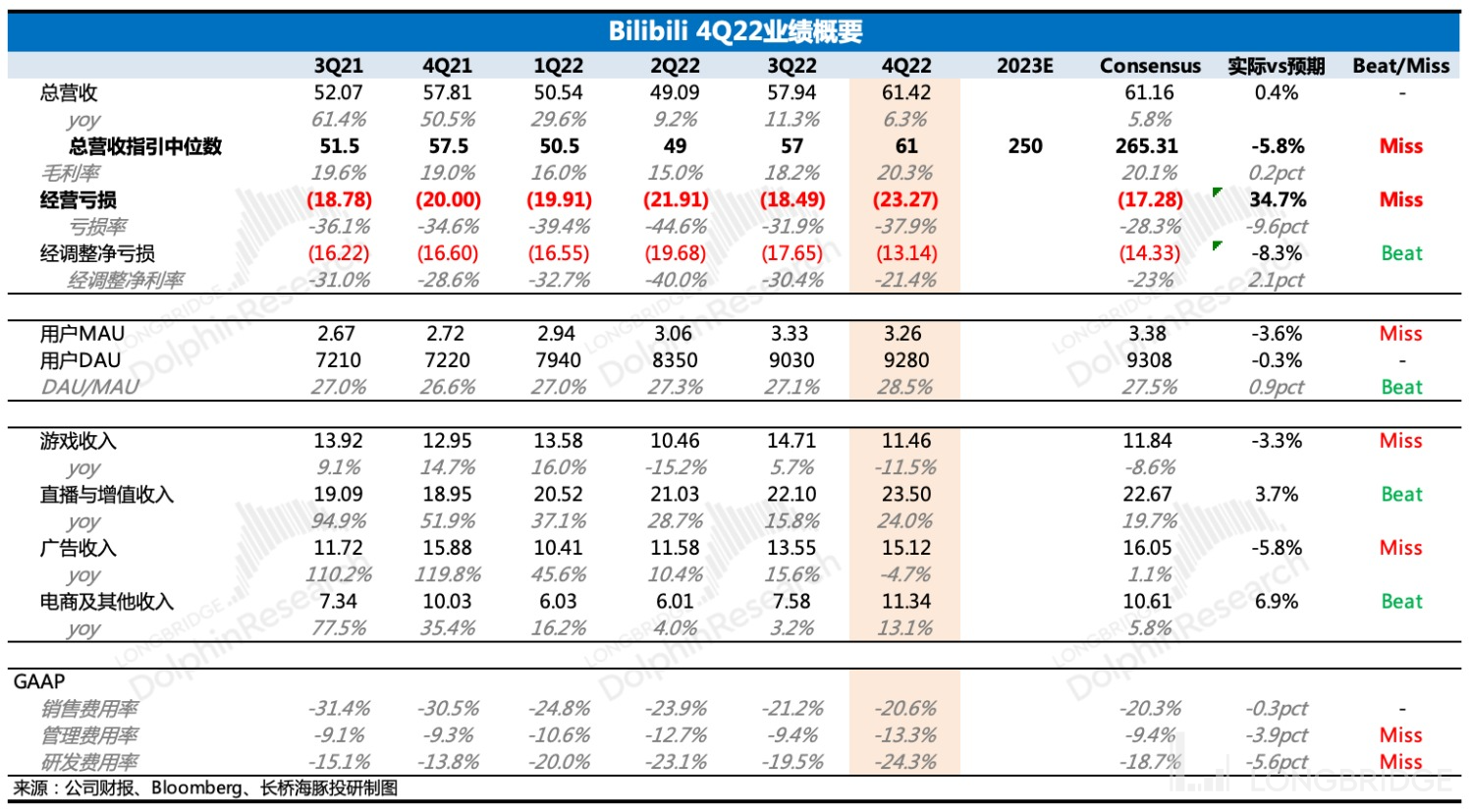 1、全年指引偏保守:变现是目前 B 站的核心问题,公司对 2023 年的收入指引比市场一致预期要弱,同比只有 14% 的增长。