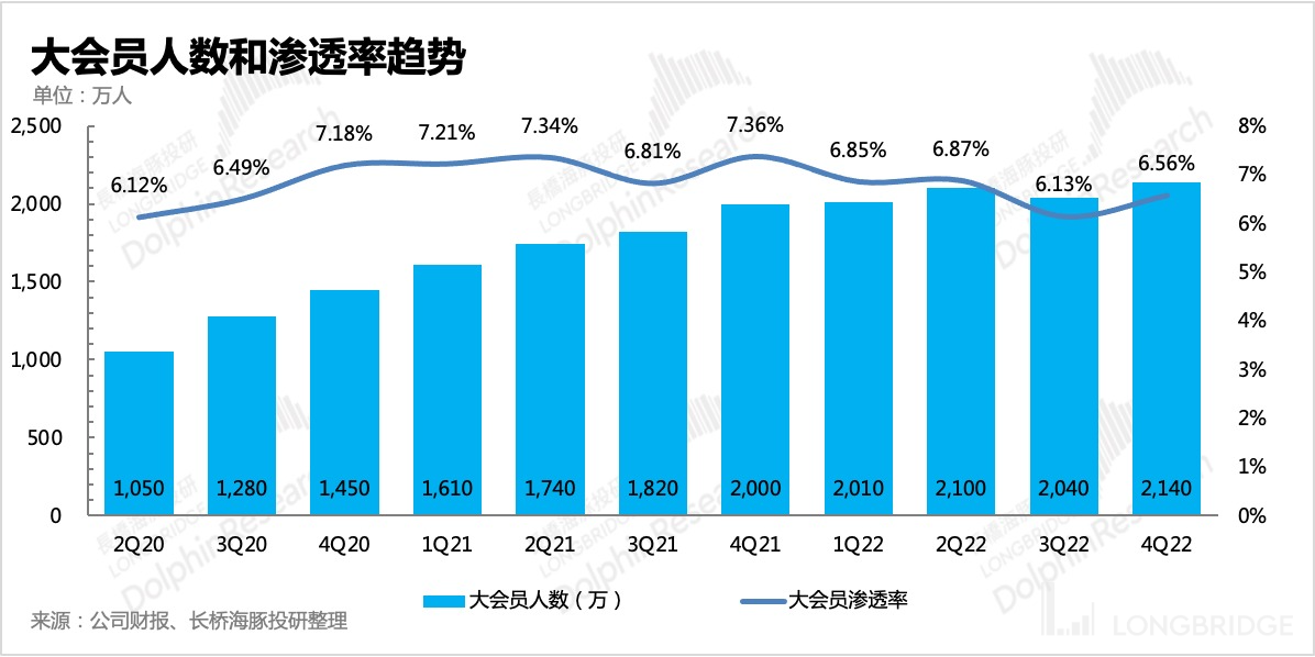 四季度大会员数量 2140 万,受《三体》等热门内容驱动,环比增加 100 万用户。
