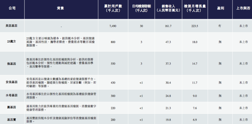 根据美因基因招股书,除了美因基因年收入超过1亿元,其他国内公司都不超过5000万元。市场占有率第六名的基因宝,2020年收入只有1980万元。