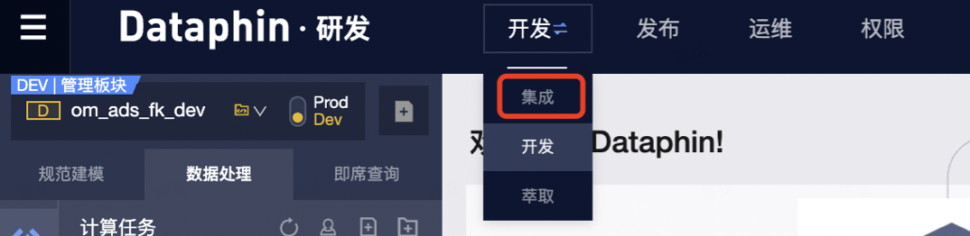 1.点击集成进入集成页面进行数据抽取和调度,如下所示: