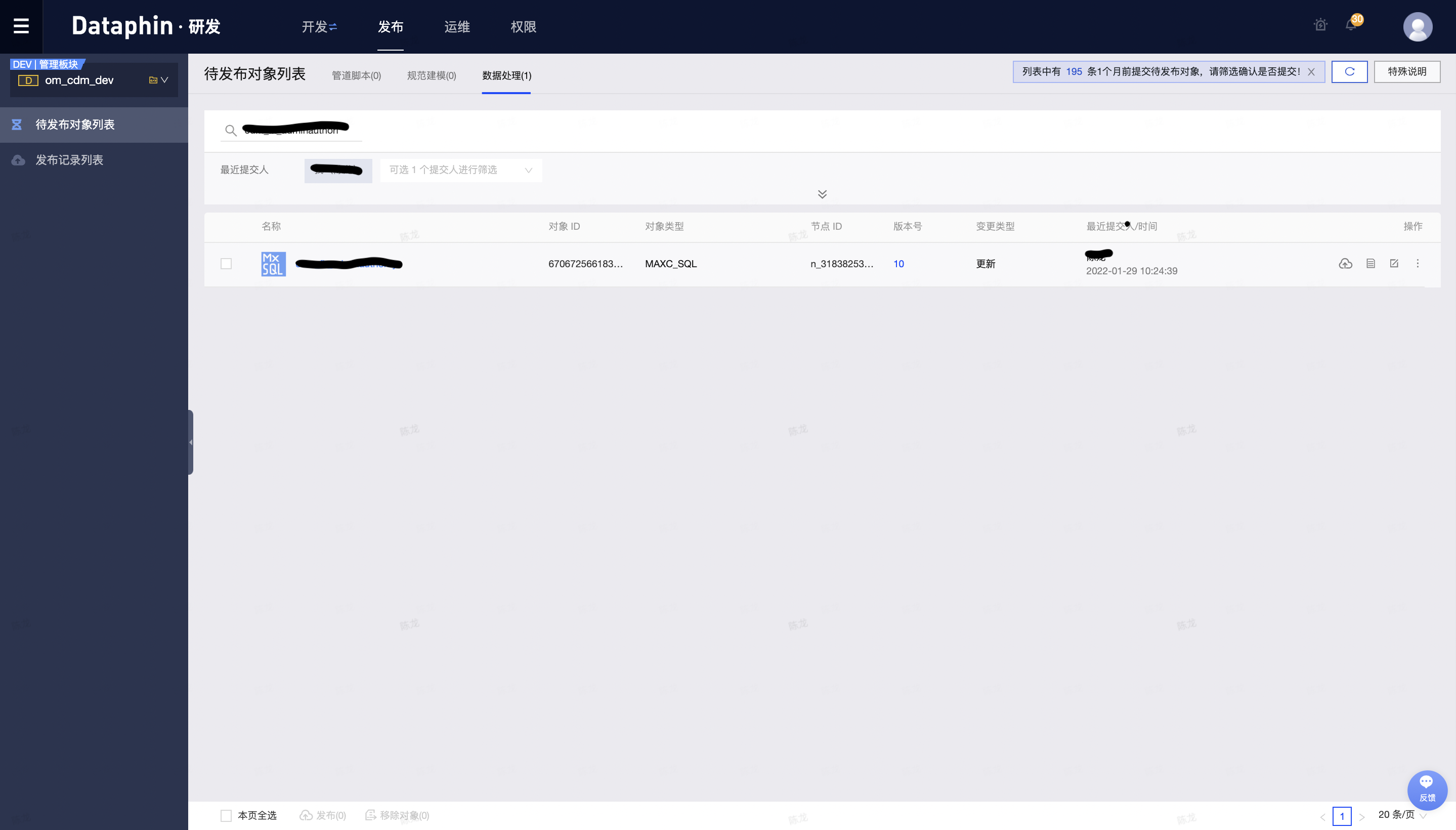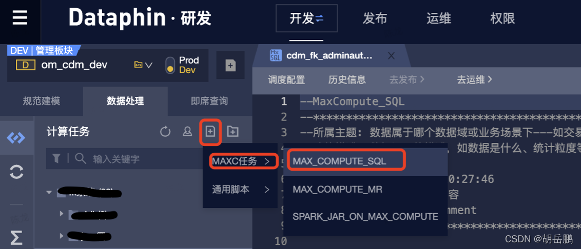 数据处理主要分为CDM层数据处理和ADS层数据处理,在开发/测试环境任务发布成功之后,会自动发不到生产环境