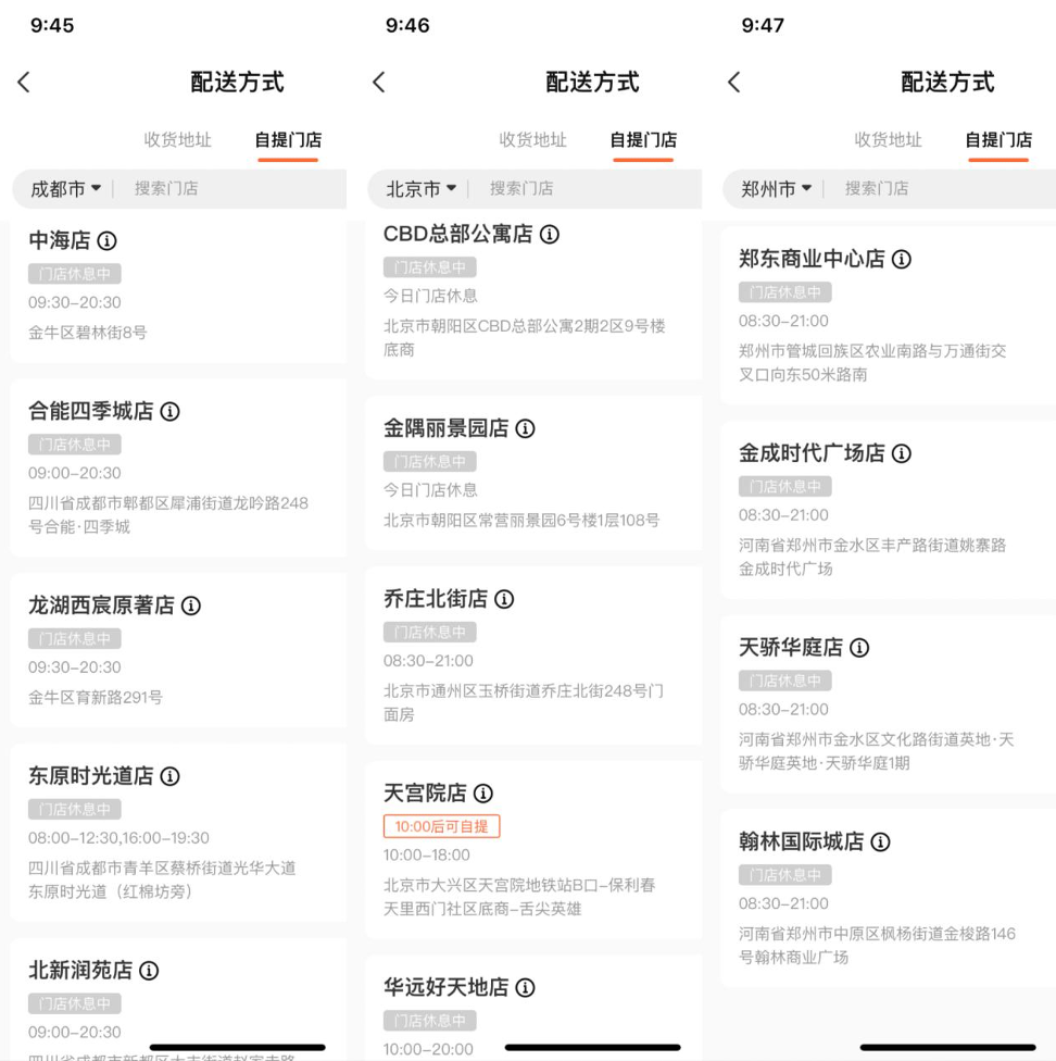 而这种情况也并非北京独有,郑州8家门店7家显示异常,有当地媒体探访发现7家门店全部关门歇业;另外,成都16家、长沙4家、深圳4家、武汉3家都显示休息中(确认)......