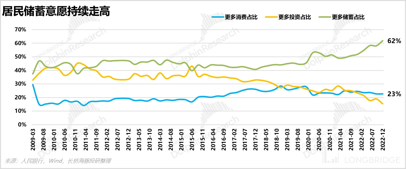 通过这个也可以看出,居民的消费能力是有的,但是消费的心态受损了。这也是人民银行在 2022 年第三季度货币政策执行报告中所总结出来的,“今年以来我国银行体系存款总体增长较快,同时由于疫情等特殊因素,居民预防性储蓄增加”,并且 “国内居民预防性储蓄意愿上升制约消费复苏 ‘’。