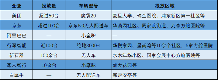 上海疫情无人配送车投放情况,资料来源:公开资料整理 制表:洞见新研社