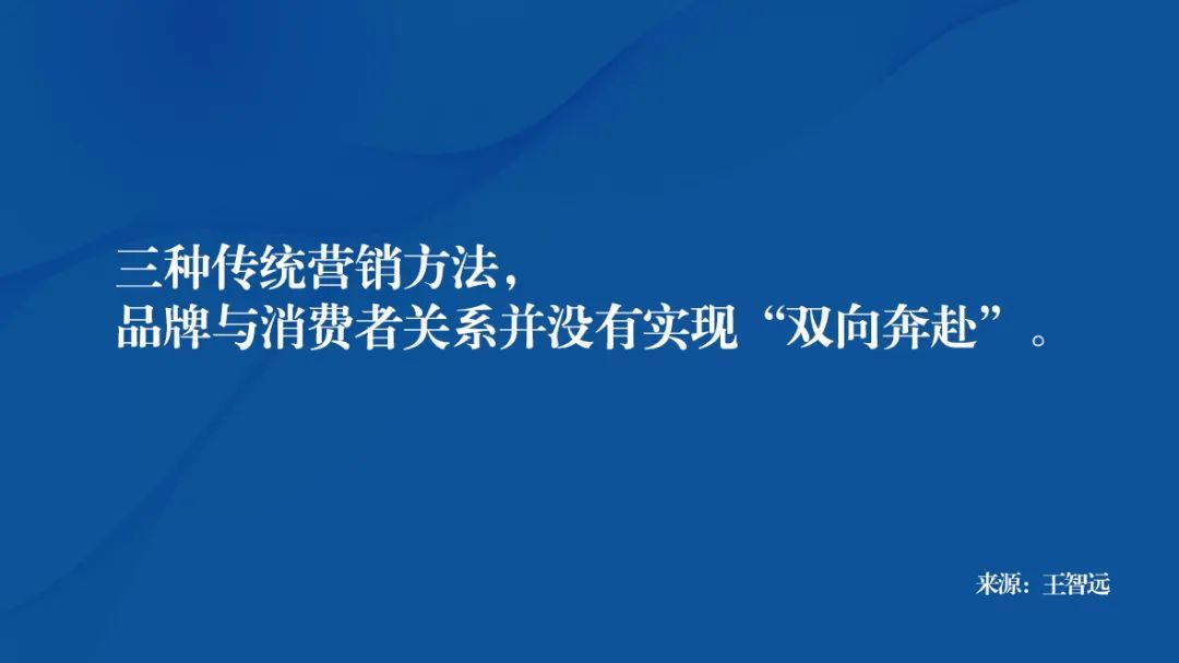 两种都没有错,但已经不适合当下用户想要,所以不难看出,以往潜台词,用户说“你应该挖掘我的兴趣”,品牌说“我的产品真好”,营销“品牌与消费者”的关系并无法实现“双向奔赴”。