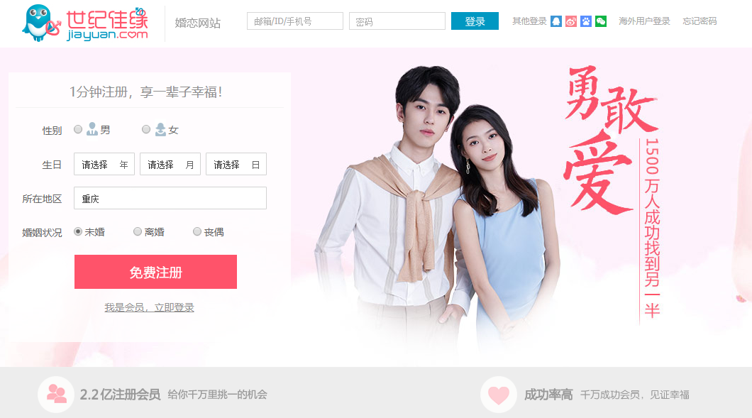 世纪佳缘已累计2.2亿注册会员 图源:世纪佳缘官网