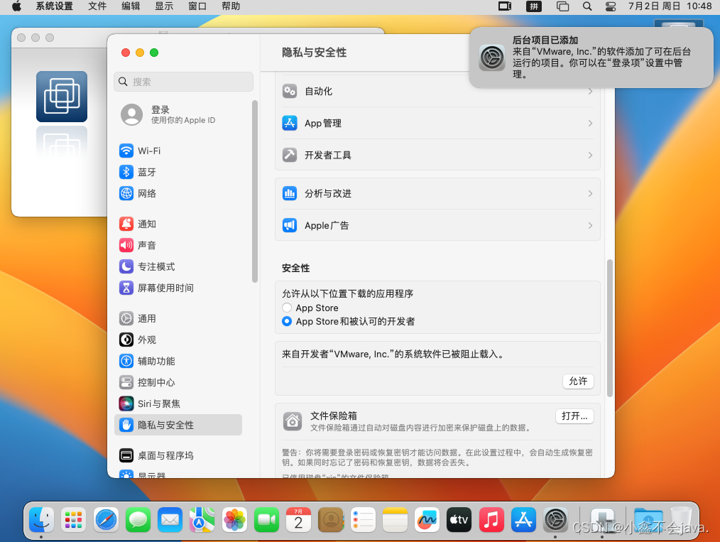 二、重启macos虚拟机后解锁双击VMware Tools运行安装镜像文件;