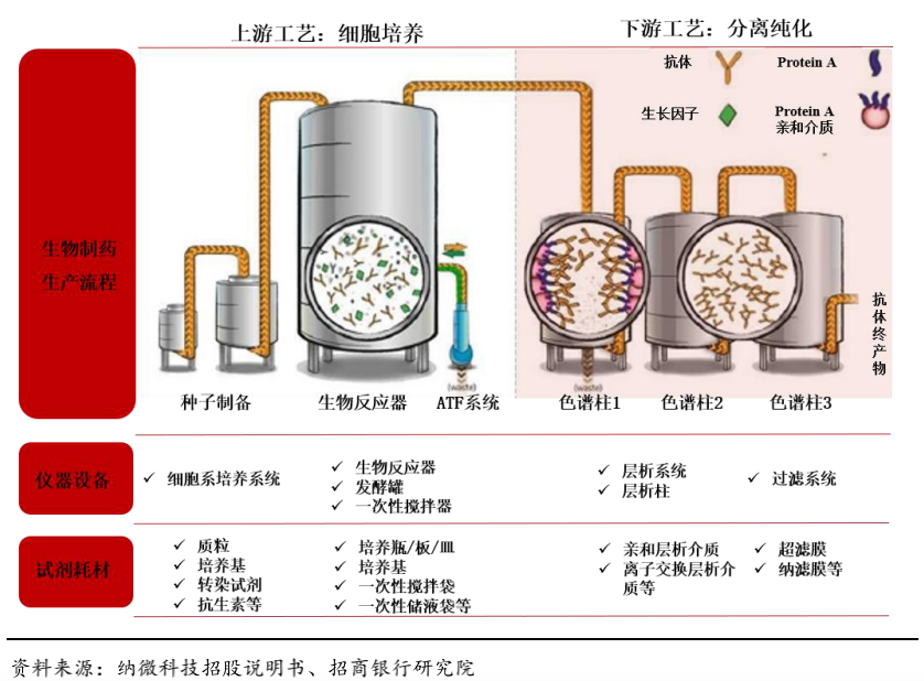 其中,又以试剂、耗材挑大梁,贡献了过半的收入。试剂及耗材主要包括细胞培养基、一次性产品、过滤器及层析填料。