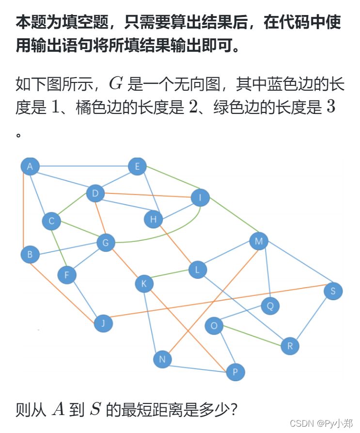 datas=[ [0,0,0], [0,1,2], [0,2,1], [0,3,1], [0,4,1], [1,1,0], [1,0,2], [1,6,1], [1,9,2], [2,2,0], [2,0,1], [2,3,3], [2,5,3], [2,6,3], [3,3,0], [3,0,1], [3,4,1], [3,8,2], [3,6,2], [4,4,0], [4,0,1], [4,3,1], [4,7,1], [4,8,3], [5,5,0], [5,2,3], [5,6,1], [5,9,1], [6,6,0], [6,1,1], [6,2,3], [6,3,2], [6,10,2], [6,8,2], [6,5,1], [7,7,0], [7,3,1], [7,4,1], [7,8,1], [7,11,2], [8,8,0], [8,3,2], [8,4,3], [8,12,3], [8,7,1], [9,9,0], [9,1,2], [9,5,1], [9,18,2], [10,10,0], [10,6,2], [10,11,3], [10,13,1], [10,15,2], [11,11,0], [11,10,3], [11,7,2], [11,12,1], [11,17,1], [12,12,0], [12,8,3], [12,11,1], [12,13,2], [12,10,1], [12,18,1], [13,13,0], [13,10,1], [13,12,2], [13,15,1], [14,14,0], [14,16,1], [14,15,1], [14,17,3], [15,15,0], [15,14,1], [15,10,2], [15,13,1], [16,16,0], [16,12,1], [16,14,1], [17,17,0], [17,11,1], [17,14,3], [17,18,1], [18,18,0], [18,17,1], [18,9,2], [18,12,1] ] graph=[[float('inf')]*19 for i in range(19)] for u,v,c in datas: graph[u][v]=c for k in range(19):#以k为中转站 for i in range(19): for j in range(19): graph[i][j]=min(graph[i][j],graph[i][k]+graph[k][j]) print(graph[0][18])这是我一开始的做法,比较笨 比如输入了[11,12,1],实际上[12,11,1]就不用在输入了
