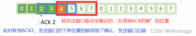 - (2)收到了一个ACK:GBN协议中,对n号帧的确认采用累积确认的方式,标明接收方已经收到n号帧和它之前的全部帧。