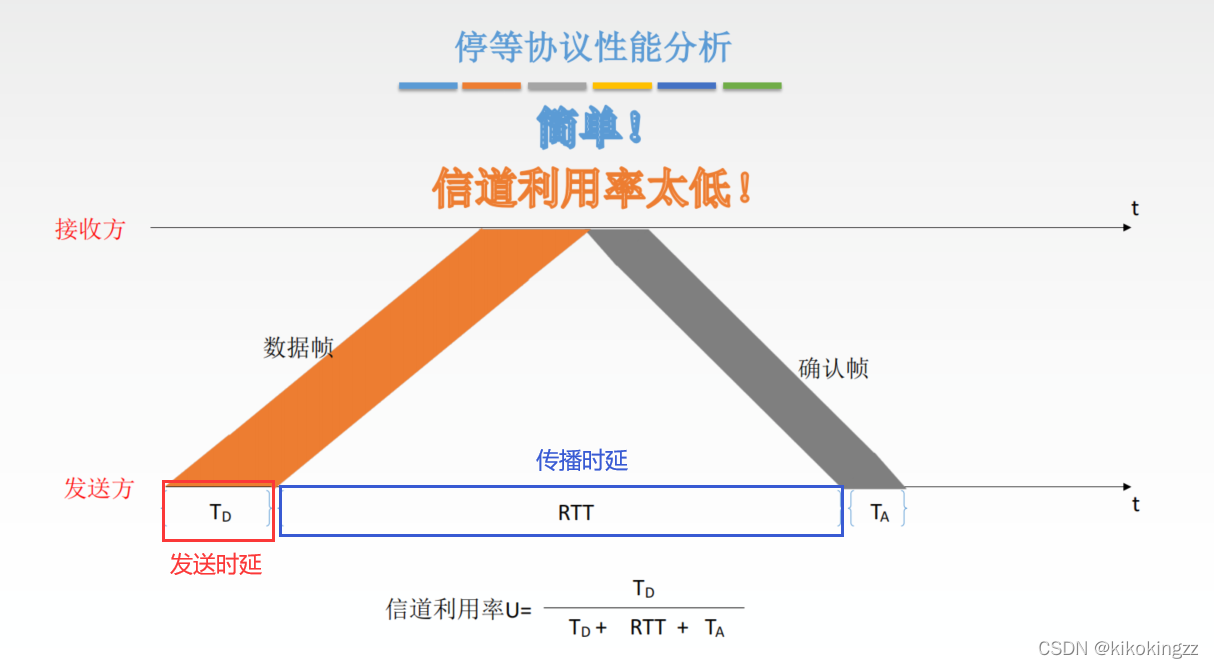 发送方每发送一帧, 都要等待接收方的应答信号,之后才能发送下一帧;接收方每接收一帧,都要反馈一个应答信号,表示可接收下一帧, 如果接收方不反馈应答信号,那么发送方必须一直等待。每次只允许发送一帧, 然后就陷入等待接收方确认信息的过程中,因而传输效率很低。
