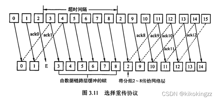 为进一步提高信道的利用率,可设法只重传出现差错的数据帧或计时器超时的数据帧(不像GBN协议那么挑食),但此时必须加大接收窗口,以便先收下发送序号不连续但仍处在接收窗口中的那些数据帧。等到所缺序号的数据帧收到后再一并送交主机。