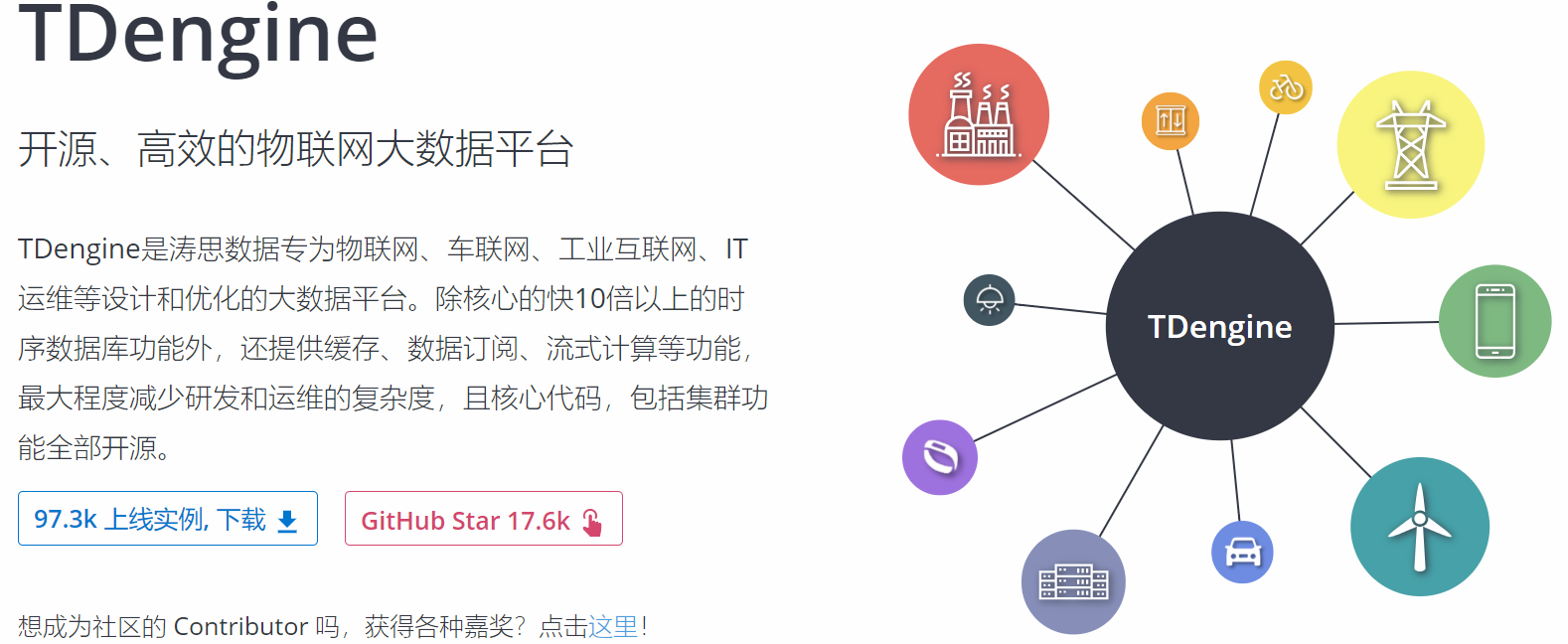 - TDengine是涛思数据专为物联网、车联网、工业互联网、IT运维等设计和优化的大数据平台,广泛运用于物联网、车联网、工业互联网、IT运维等领域。