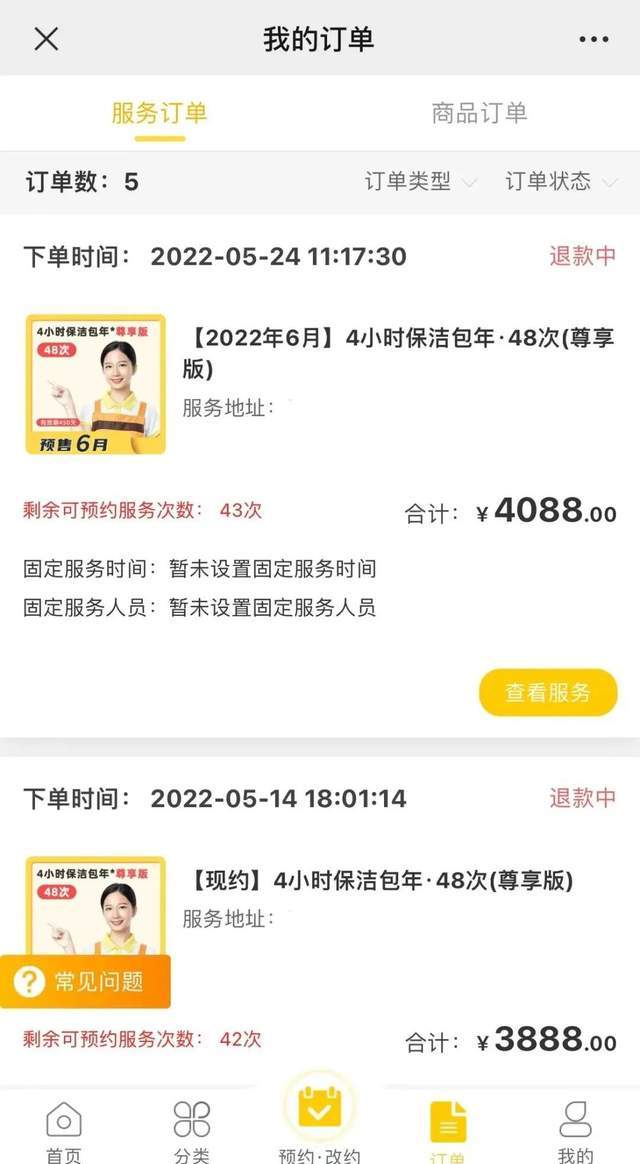 今年7月8日起,黄君发现,平台开始预约不上,约好的家政人员也多次爽约。这让黄君选择不再相信,提交了退款申请,但一直没有等到退款。