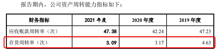 较高规模的存货水平一定程度上增加了公司的存货跌价风险和资金占用压力。2019年至2021年,致欧科技存货跌价损失分别为3192.71万、2678.86万和8705.37万;存货周转率分别为4.63次、3.17次、3.09次,连续两年下滑。