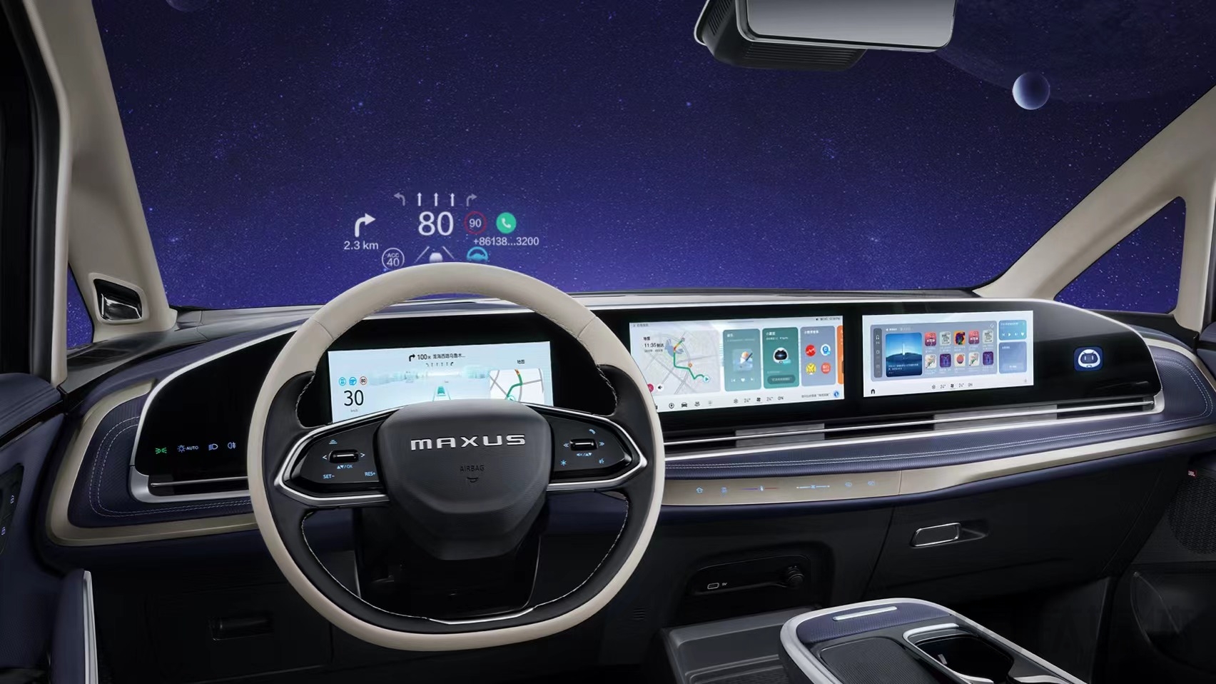 驾驶舱内,前排采用一体式“卷展云舒”智慧三联屏:主驾配备10.25吋液晶仪表、12.3吋高清触摸中控屏以及10吋风挡HUD抬头显示;副驾配备12.3吋互动触控屏以及3吋imon屏AI buddy,支持分区空调调节、视频音乐播放等功能。