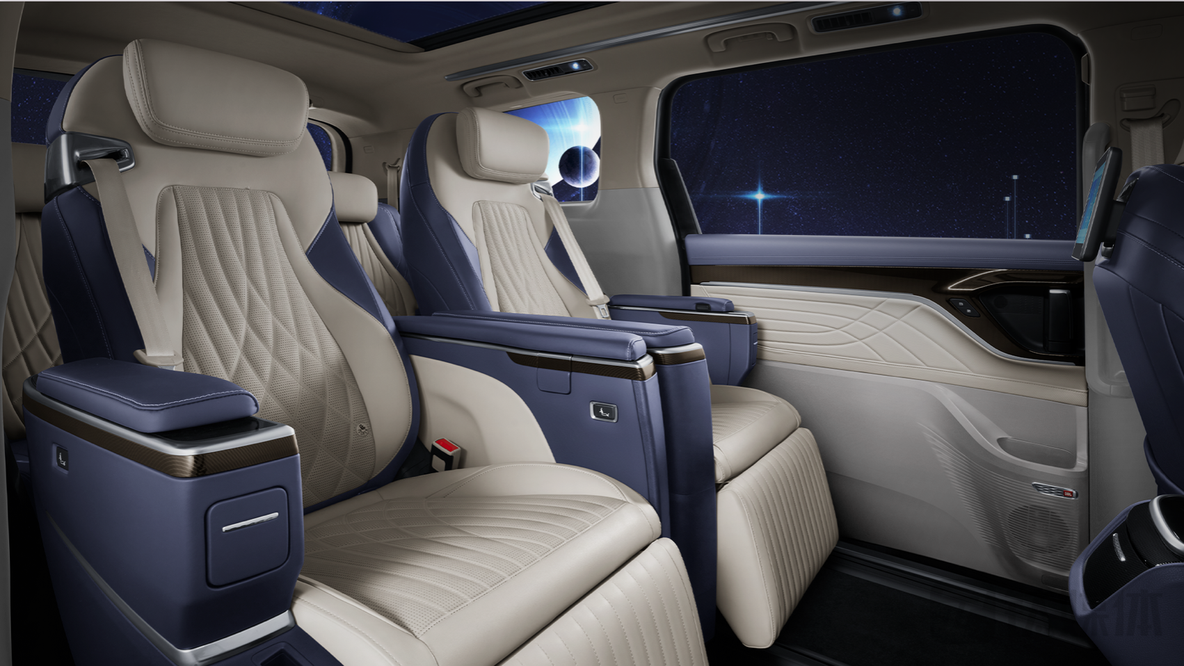此外,上汽大通MAXUS为第三排用户提供了与前排VIP座椅同等的豪华优待:三排搭载两个独立电动座椅,支持加热、通风、按摩、腿托以及电动调节功能,并配备专属USB接口、空调出风口及可视面积达0.2㎡的超大后排车窗。