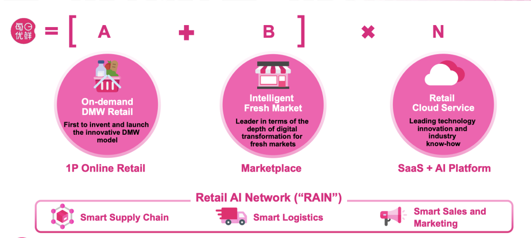 每日优鲜在招股书中提出了全新的**(A+B)×N(即(前置仓+智慧菜场)×零售云)**发展战略,上市后逐步降低前置仓的重资产布局,不断大幅削减前置仓数量,目前已经从高峰期的1500个缩减到2021年二季度末的625个。