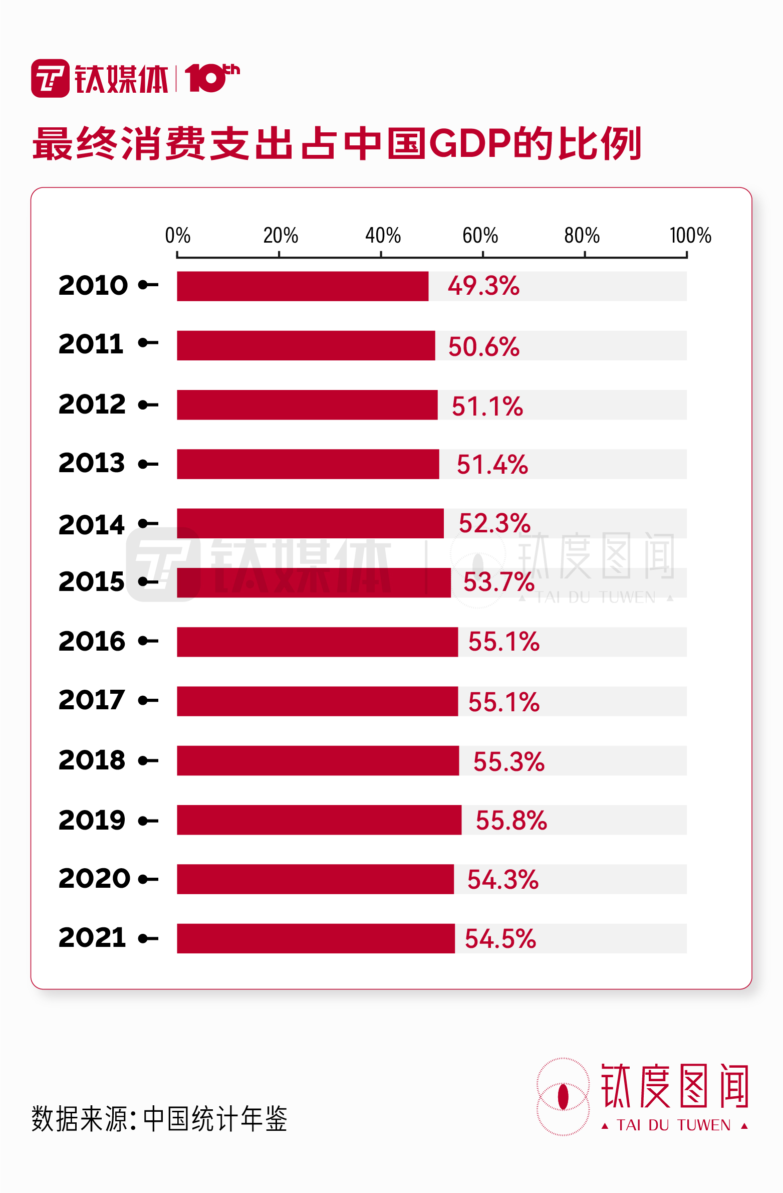 消费已成为稳定中国经济的“压舱石”。最终消费支出占中国GDP的比重,在近10多年来逐年上升并稳居50%以上,这表明消费既能稳定也能拉动经济,经济稳也有赖于消费稳。所以提振居民消费意愿、促进居民消费恢复至关重要。