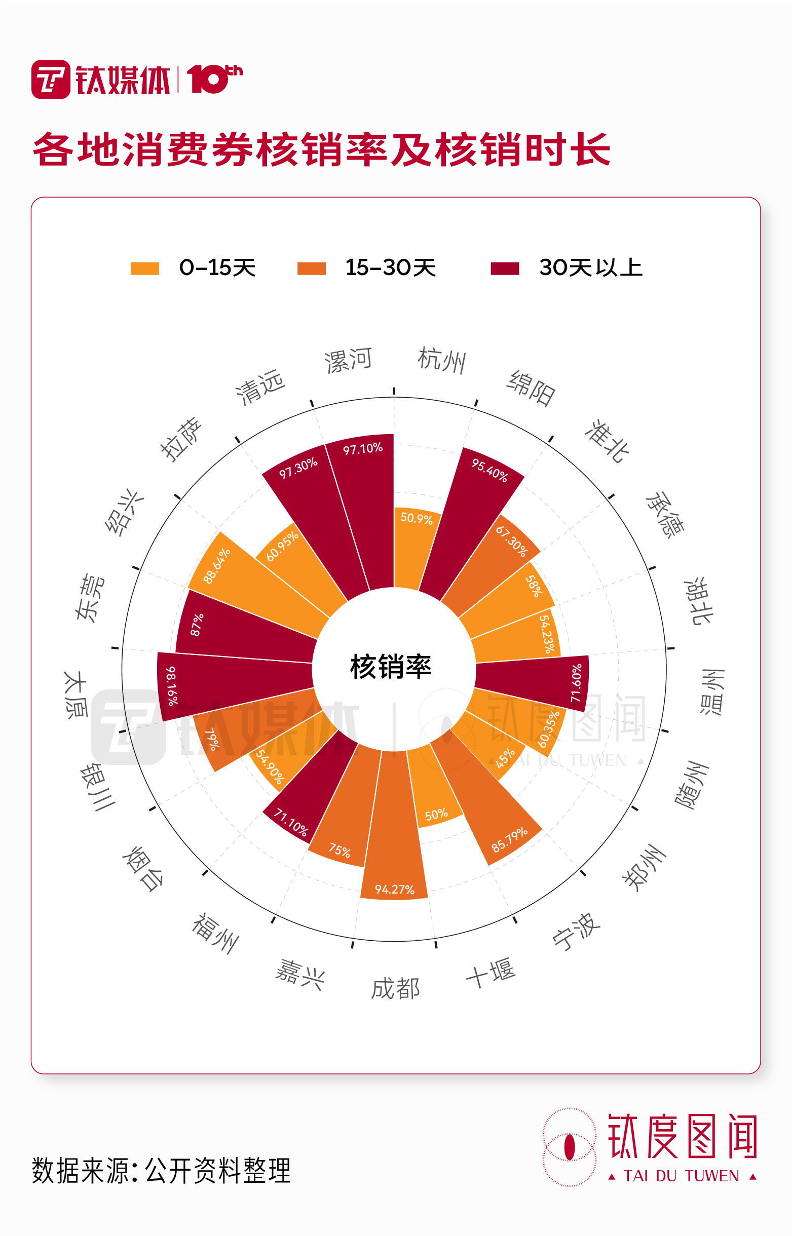 核销率作为消费券的主要“KPI”,是衡量消费券发放效果的一个关键变量,即一段时期内消费者获取消费券之后的使用比例。核销率超过90%,意味着每发放10张消费券,就有9张以上得到使用。